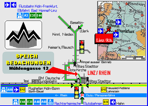 Aus Richtung Bonn (B42) kommend: Fahren Sie nach der Ampel links durch die Unterführung, folgen Sie dem Strassenverlauf für ca. 300 m. Sie finden uns auf der rechten Seite.